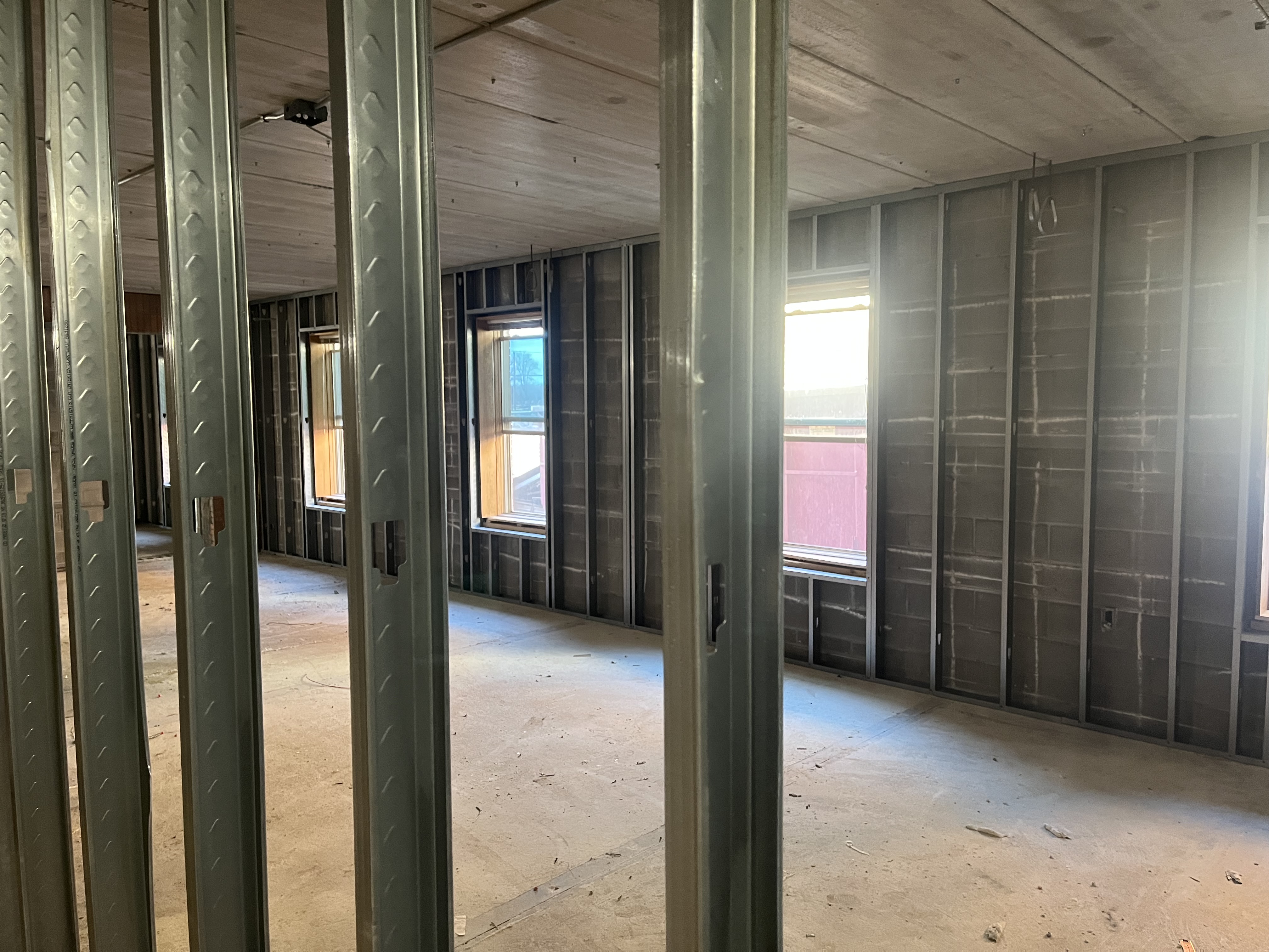 Office framing is happening now November 4, 2025 Who is the guy in the red sweatshirt? He is the one making it all happen. Thank you Jim Bright!