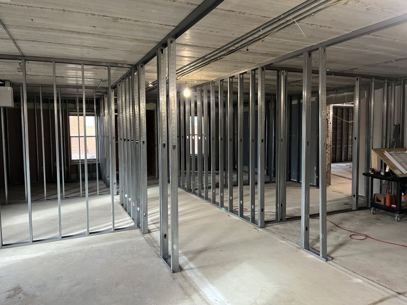Office framing is happening now November 4, 2025 Who is the guy in the red sweatshirt? He is the one making it all happen. Thank you Jim Bright!